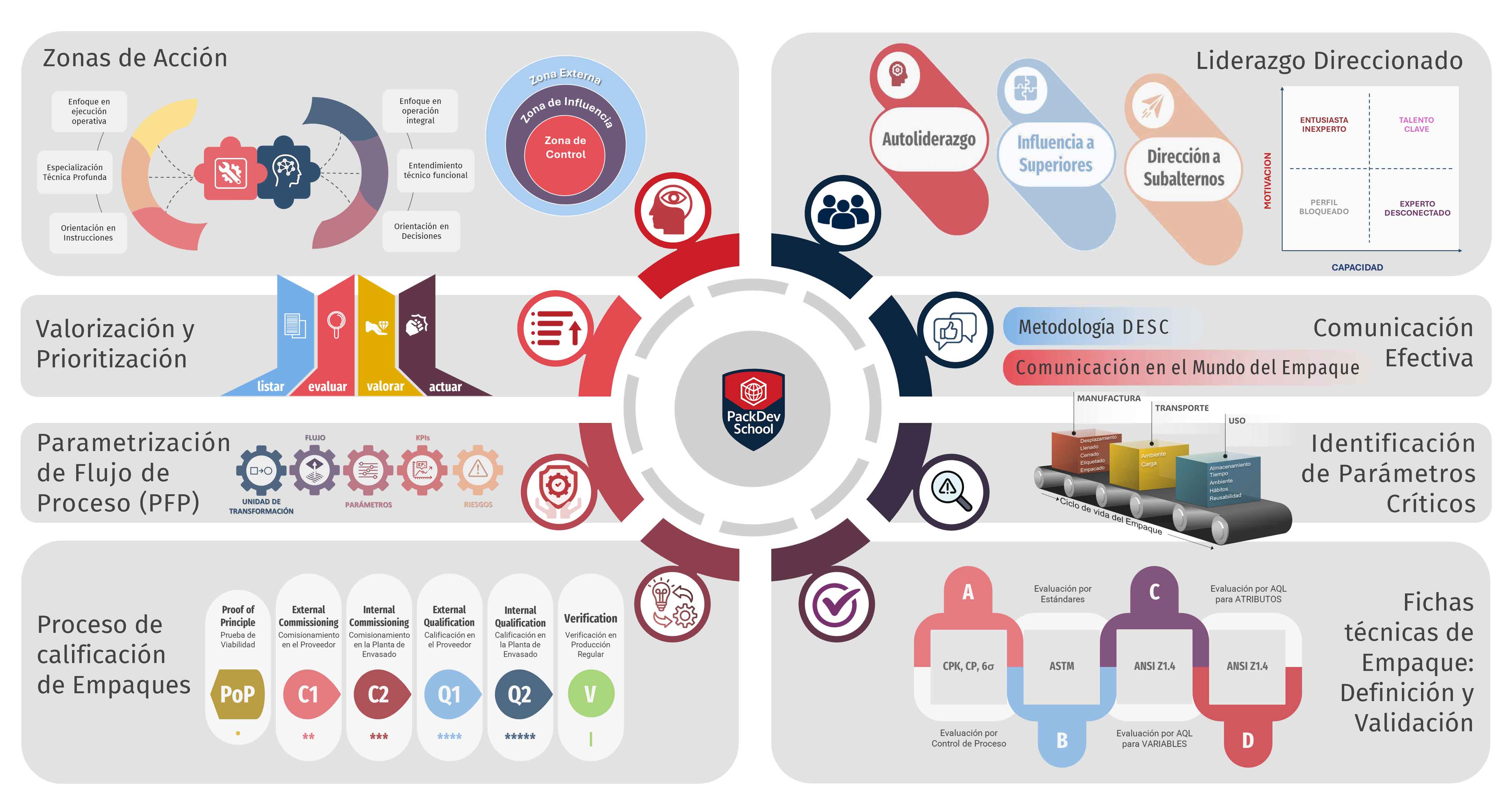 El programa de referencia para desarrollar criterio técnico, estructura y metodología en empaque. El punto de entrada recomendado para cualquier profesional que quiera abordar proyectos de empaque con orden, autonomía y confianza, sin importar la plataforma o industria.